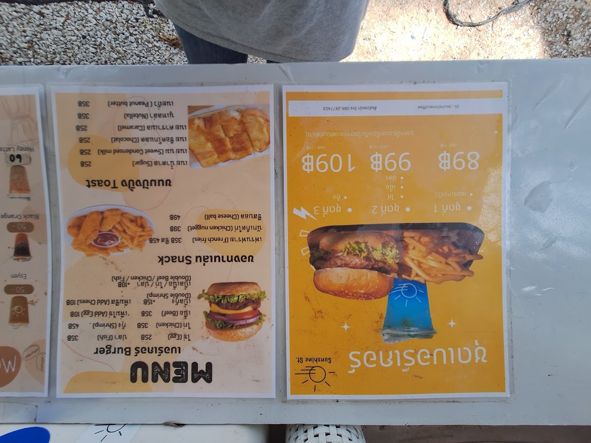 Sunshine coffee Narathat beach Menu